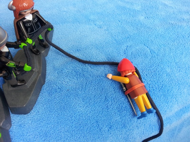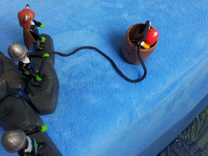 Corporal Luc wirft kurzerhand ein Seil in Richtung Fass Gefangen.....Buchstäblich in letzter Sekunde..... Ziiiiiiiiiehen !!!!!!! Geschafft....tief unten liegt das Fass........ Danke euch meine Freunde....... vielleicht war meine Idee doch etwas......unausgereift.....