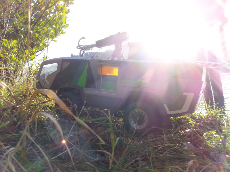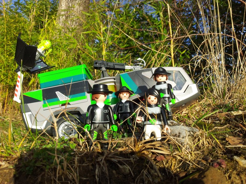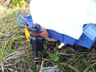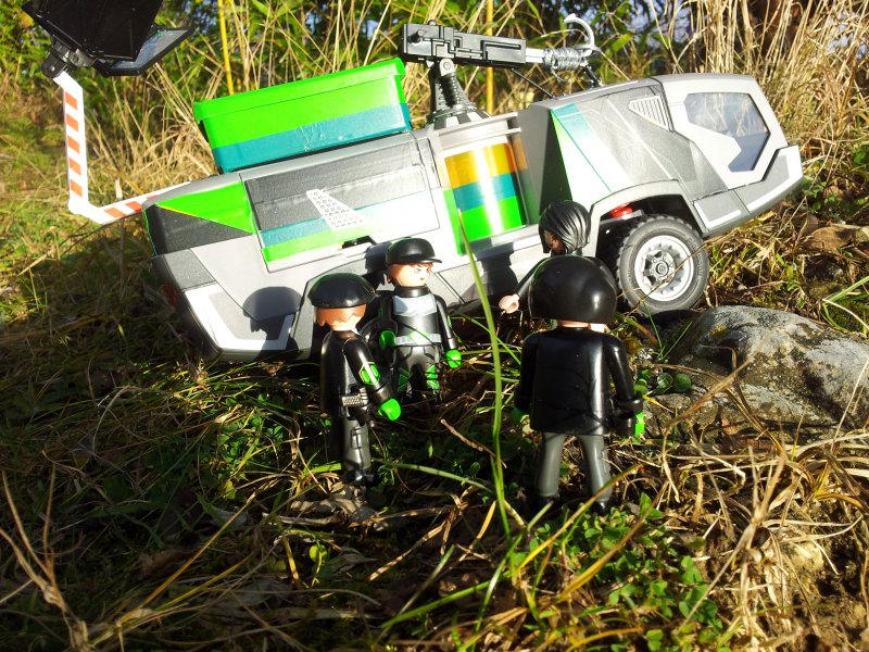 Das Zeitmobil wird getarnt. Diesmal nicht mit aufwändiger Technik.... Blätter und Äste tun's auch....