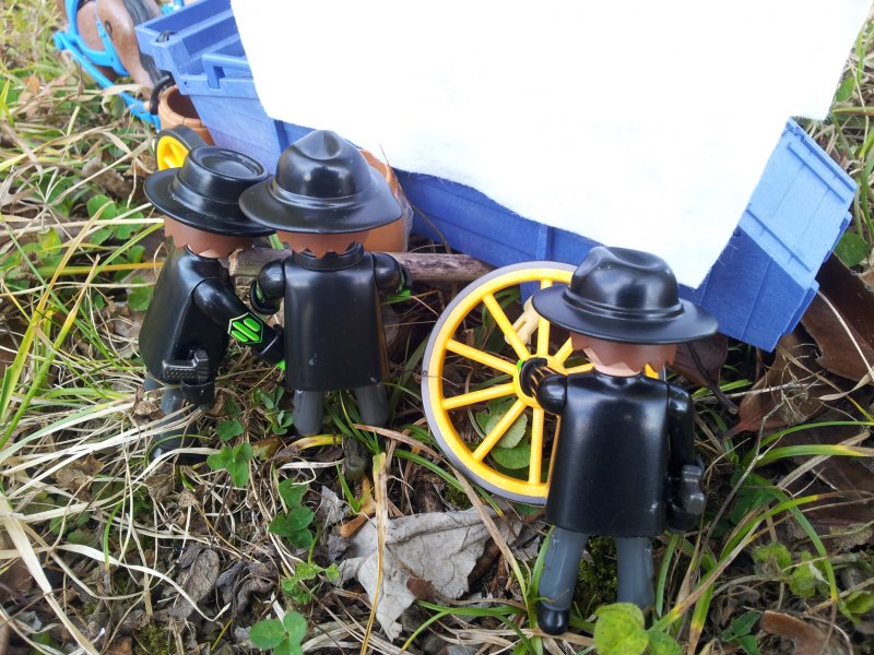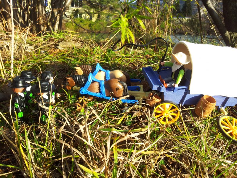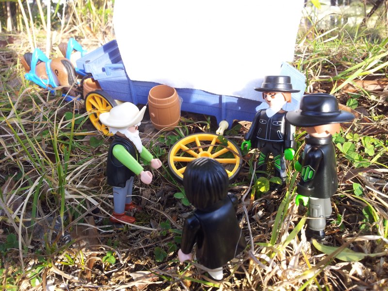 Mit einem hellen Blitz landet das Dino-Team im "Wilden Westen"...... Fast hätten wir es geschafft und wären im Ziel gelandet... was nun? Erstmal eine kleine Verkleidung, obwohl, genügend schräge Typen gibts hier bestimmt.....