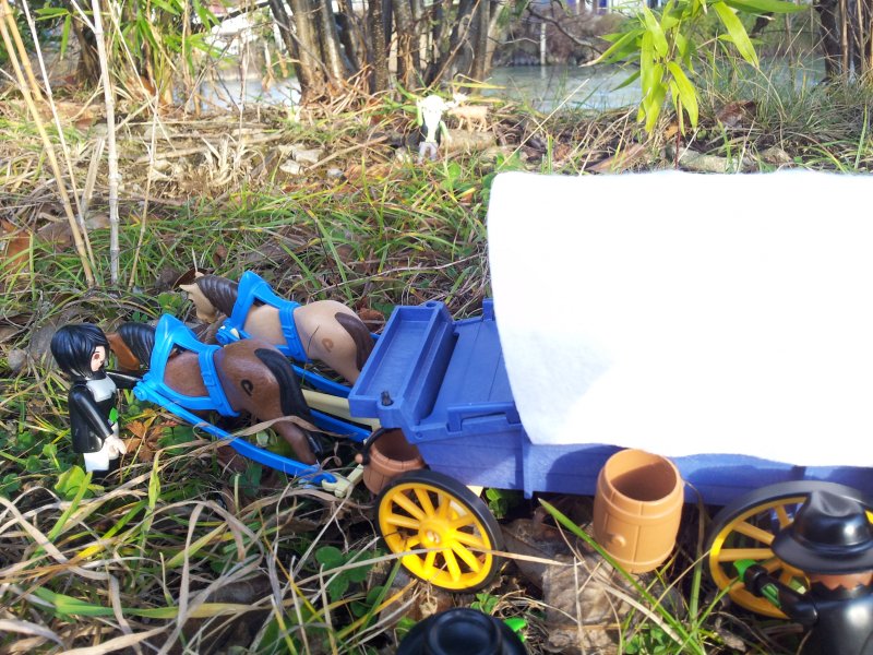 "Mein Wagen hat ein kaputtes Rad, und ich muss dringend eine Kiste ausliefern..es ist eine überaus wichtige Fracht" Also gut...... Hebel angesetzt und...HAU-RUCK