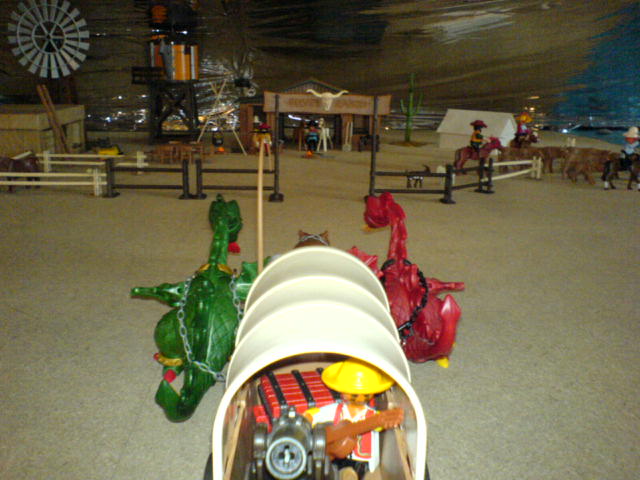 *Wusch* und letztendlich kommen sie zum Rand oder zum Ende der WElt. (Wieder an Land.) Ungeduldig klettern Fritz und Han vom Kutschbock...