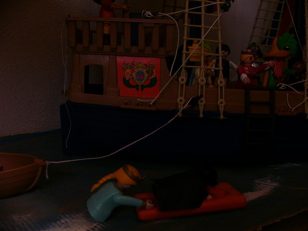 .....Fredeswind lud Jedi ein an Bord zu kommen, doch er wollte sich lieber ein bisschen im Beiboot ausruhen und am Morgen weiterschwimmen. Das erlaubte Fredeswind natürlich gerne und Jedi legte sich, gut zugedeckt, im Beiboot zum Schlafen nieder.
