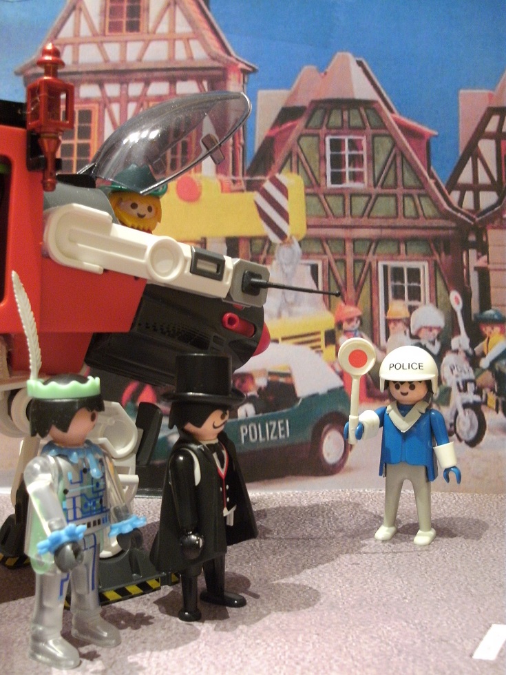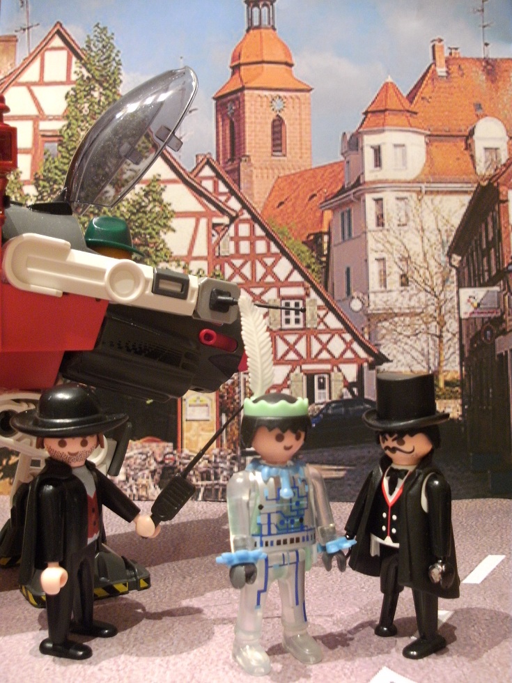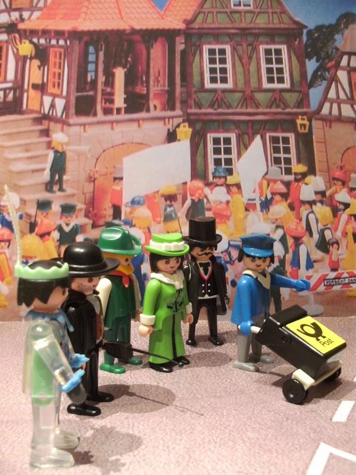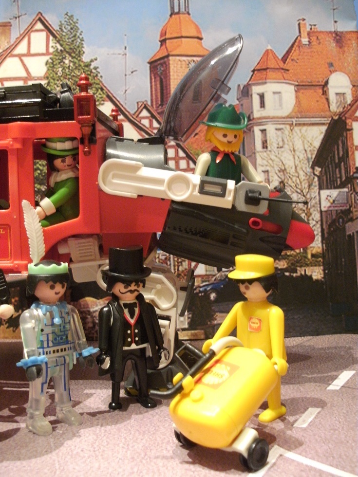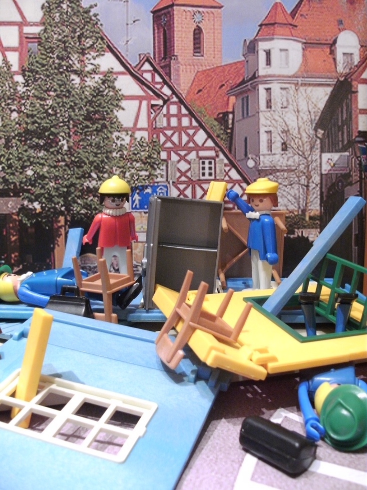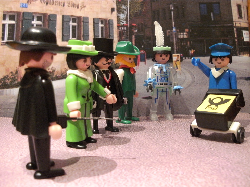 Postbote: "Keine Ahnung was du meinst..., keine Zeit..., da hinter den Markt ist irgendwo so eine Spielzeugfirma, aber Playmobil..., kenne ich nicht..., Schu!"