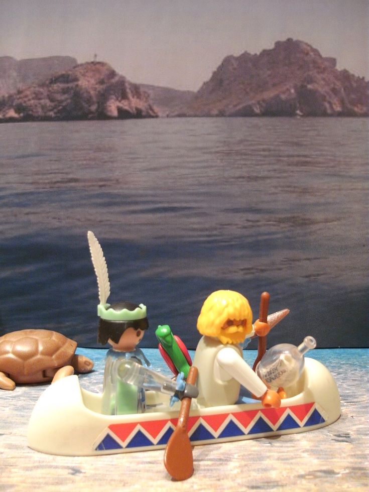 Die Strömung um Tortuga war aber stärker als gedacht und ich trieb leicht ab vom Kurs. Und da mitten im Meer sah ich die kleine Insel, und sie kam mir so bekannt vor! Das konnte doch nicht sein... Auf der Insel winkte mir der Typ aus unseren letzten Kurzurlaub…, winke, winke.