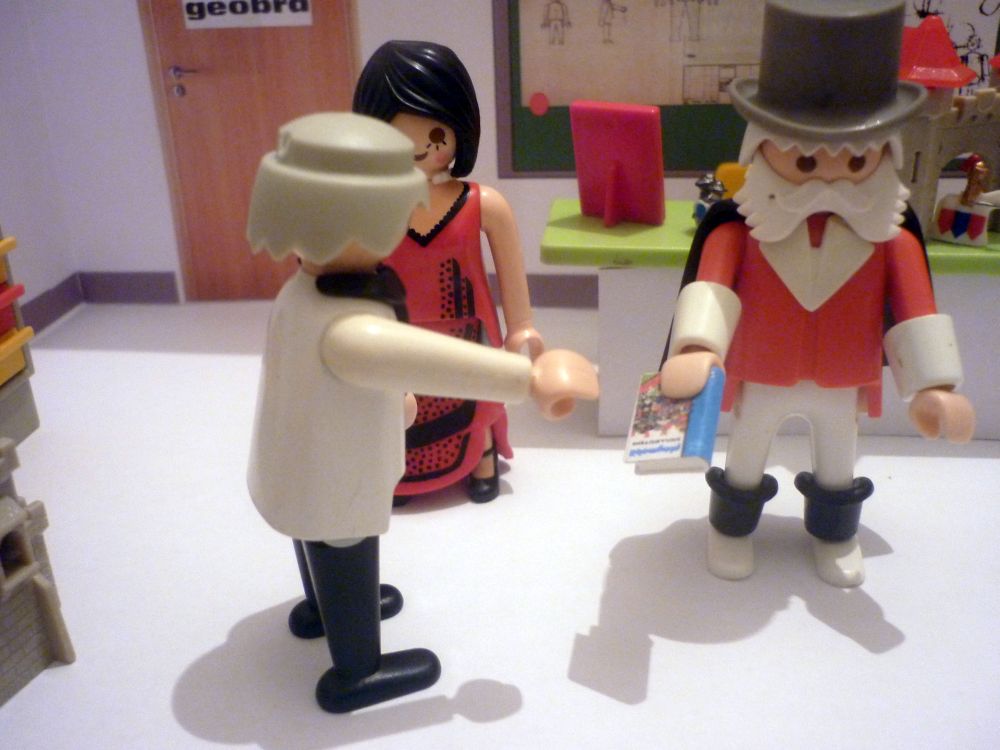 Heribert überreicht Hand Weck einen PLAYMOBIL Collector mit den Worten: