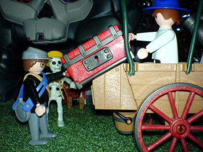 Unterwegs meint der dankbare Bankdirektor: "Für so nette und mutige Greenhorns wie Euch, haben wir im Wilden Westen eine ganz besonders nette und humorvolle Aufnahme-Zeremonie."