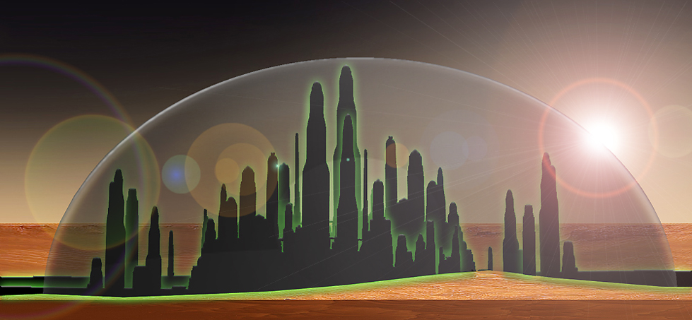 Dankenswerterweise haben wir mittlerweile auch ein Bild der Smaragdstadt – aufgenommen bei Sonnenaufgang. Gut kann man darauf die überkuppelte Stadt erkennen.