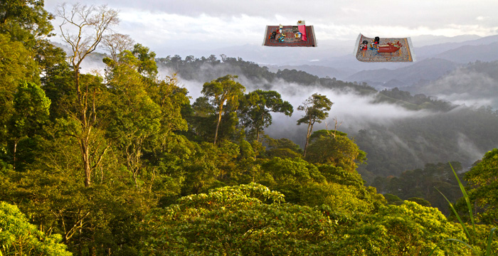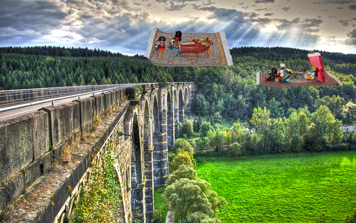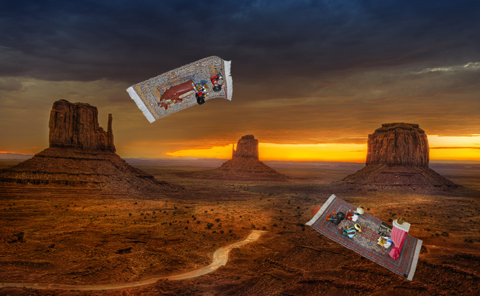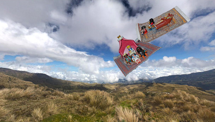 Ein starker Wind erfasste seinen Teppich und schleuderte ihn und seine Fluggäste kräftig durch.