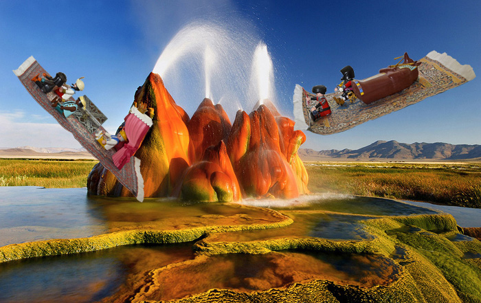 "Die Geysire...urg... in Nevada sind einzigartig. Aus drei Öff...Öff... Öffnungen fördert der Geysir permanent