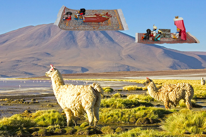 "Oh, seht... dort unten sind Alpakas. Leider sind keine mit blauem Schopf dabei.