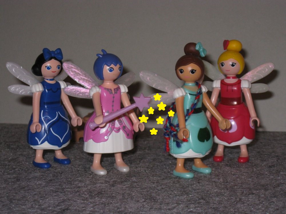 Blaue Fee von rechts über rote Fee in die Mitte