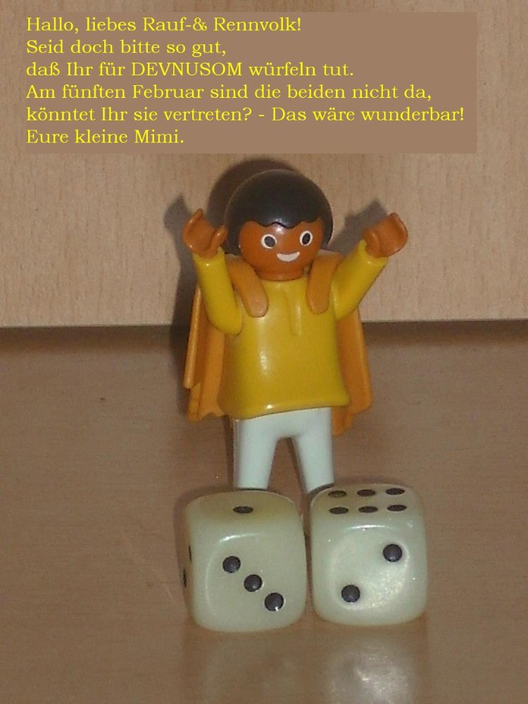 ⚂ und DEVNUSOM war durch ... durch den Wind, bestimmt [Zitat Schoko-Queen]. Eingang bestellt Playmo-Fitz für DEVNUSOM einen Biedermeier: Das kann nicht verkehrt sein. Und mit einer
