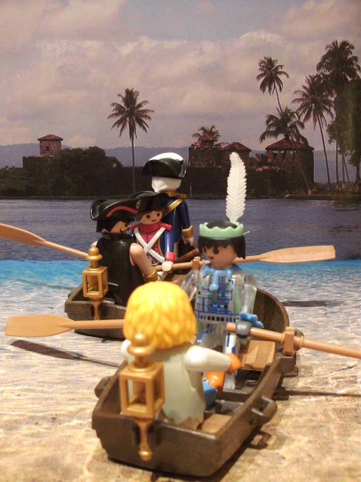 Ein Franzose: „Wissen wir,aber ich geleite euch zum Fort Rocher. Die Ware bleibt an Bord bis die Epidemie vorbei ist. Es gibt wichtigeres , der Gouverneur mochte dich persönlich sprechen. Irgendwas mit einem neuen Auftrag (er kratzt sich am Hintern).“