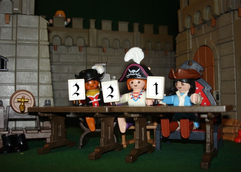 Die Jury berät sich und erhebt sich dann. Zuerst kommt die Wertung für Captain Jane. "Ihr Verräterinnen, mehr nicht?"