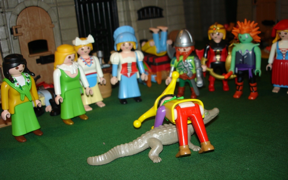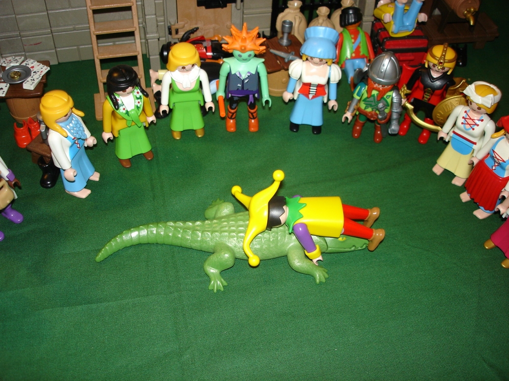 "Zu Hilfe, tun Sie doch dieses spitze Ding da weg. Ich bin so empfindlich am Nabel."