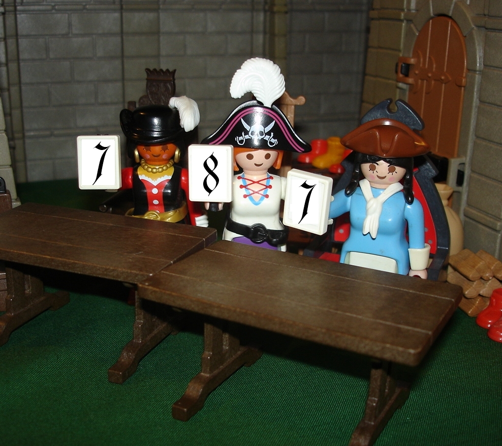 Zuerst kommt die Wertung für Captain Jane: "Was, so viele Punkte? Sie wäre fast auf's Pflaster geklatscht."