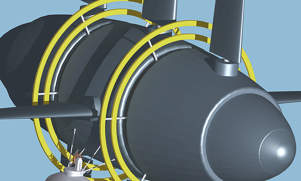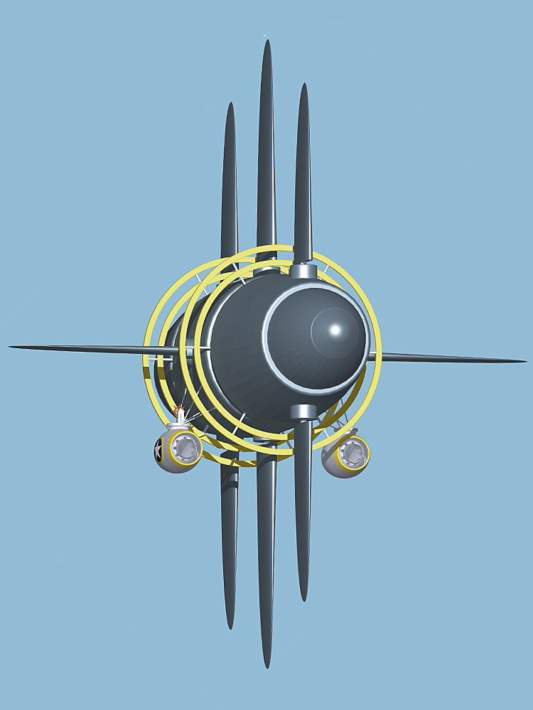 Der ursprüngliche 3D-Datensatz, die Grundlage meines Luftschiffes 2016, gab es nicht mehr. Mühevoll habe ich ihn in meinen Mittagspausen rekronstruiert und ergänzt, bis ich mit dem Ergebnis zufrieden war. Mittlerweile sind auch die Nuklear-Triebwerke (Stand: 1963) Geschichte ...