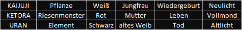 Die US-amerikanische Wissenschaftlerin landet am 1. Juni 1936 mit der "Eye in the Sky" auf Nosis Spuren (sein Tagebuch) auf Kaijujima. Urania (abgeleitet von Uranus, dem Himmel in Göttergestalt und Namensgeber für das chemische Element Uran) ist die Dreigestaltige Mahina Lani und damit auch die Atombombe!