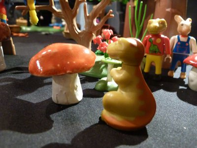 Aber leider wurde er enttäuscht. Es war ein Fliegenpilz, also keine Abwechslung. Die Freunde waren ihm gefolgt, nun waren sie alle um den Pilz versammelt.