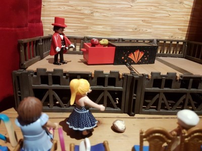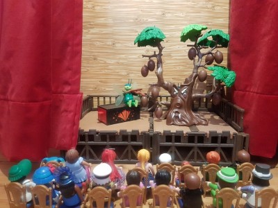 Gleich darauf öffnet sich der Vorhang wieder und anstatt des Baumes sehen wir wieder den Zauberer Mysterio.