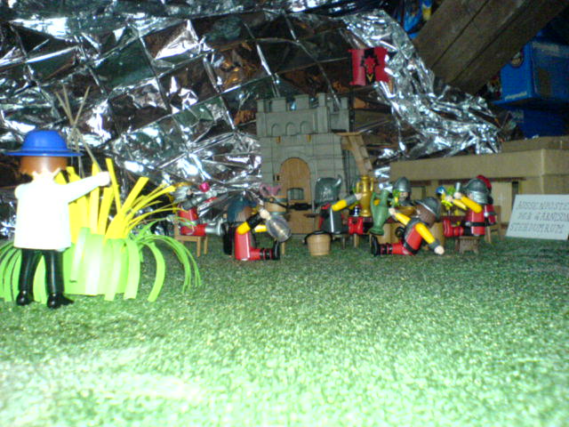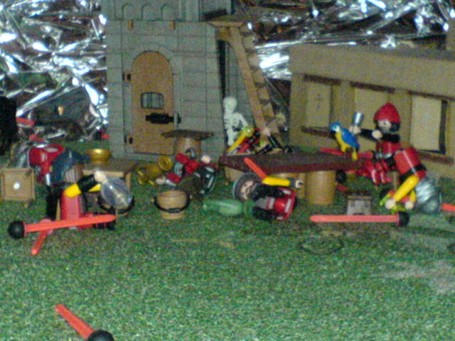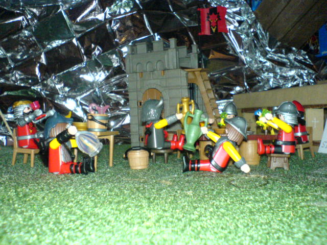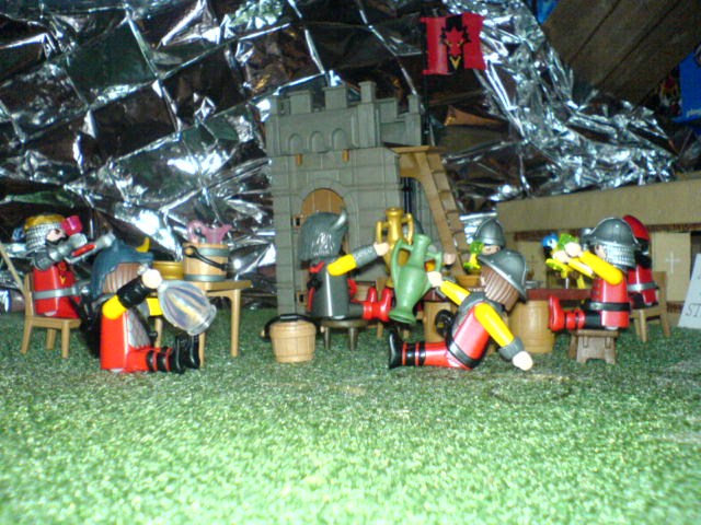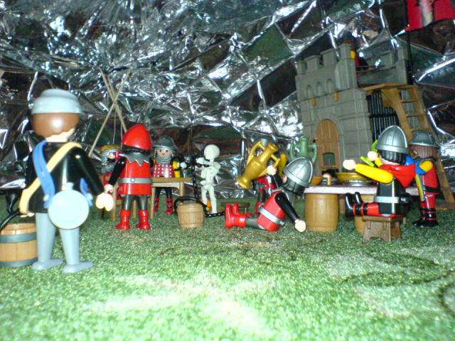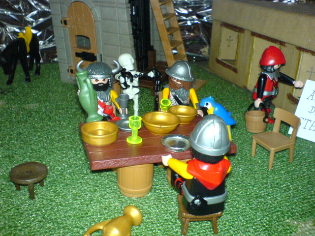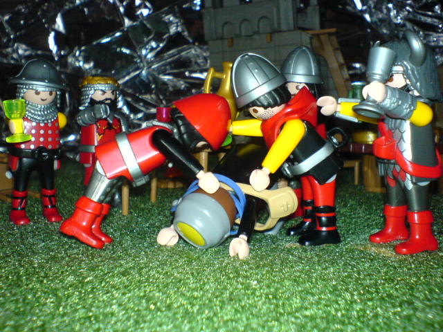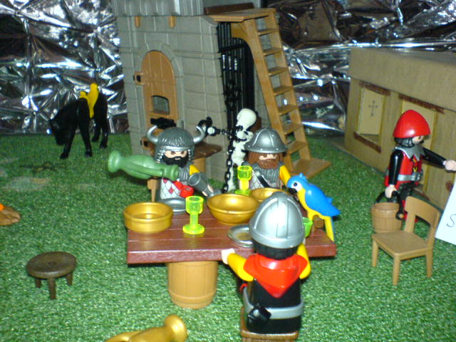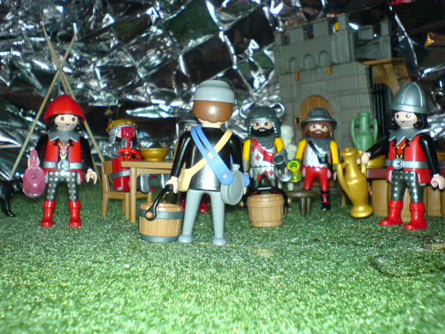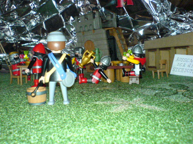 "Jungs, atten-hut! Ich bin stolz auf Euch. Wenn wir den verhökert haben, gibt es noch mehr Vino rosso, cervisia, Schweinskaldaunen, und mit Bärenblutwurst gefüllte Giraffenhälse!"