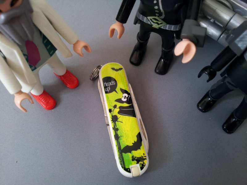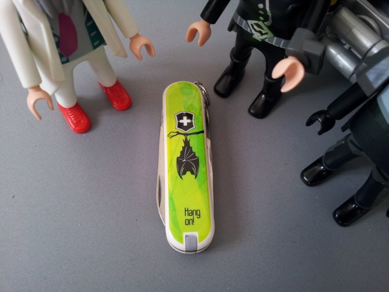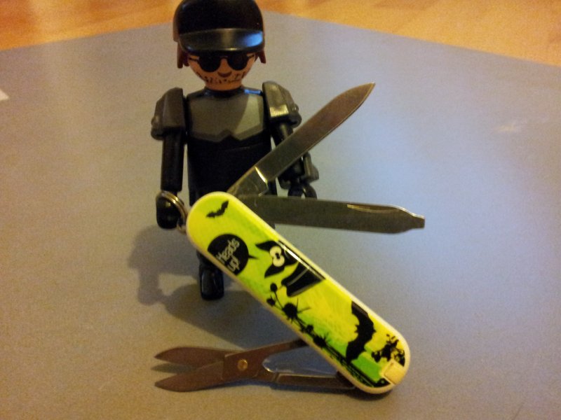 Die ausklappbaren Klinge ersetzt hier den berühmten "Schweizer Taschenlaser".....