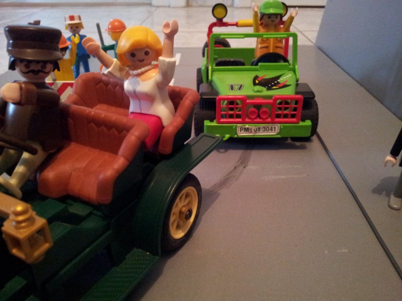 Ich glaube, wir überspringen die folgende Diskussion und lassen mal eine Frau ans Steuer. Ausserdem ist Playmolook der Meinung, dass etwas Unauffälligeres, sowohl kleidungs- als auch fahrzeugmässig, passender wäre.