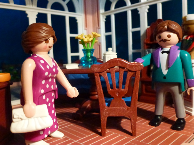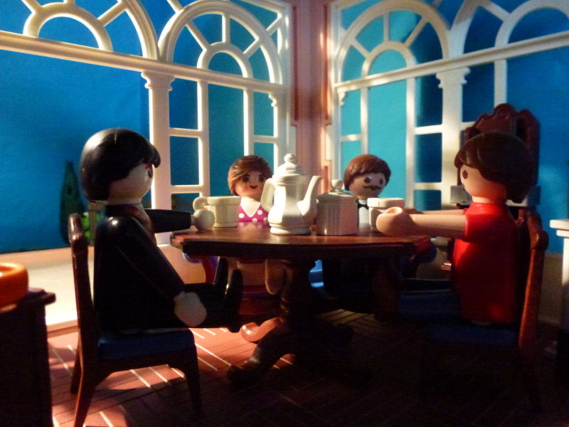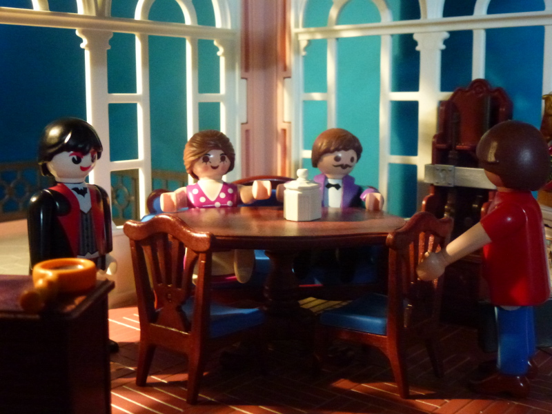Außerdem, darf ich vorstellen: Meine Nichte Elizabeth, sie ist gerade zu Besuch! Und der Herr dort drüben ist mein Butler Isidor. Ich habe ihn auf einer meiner vielen Reisen vermutlich in Transsilvanien kennengelernt und engagiert.