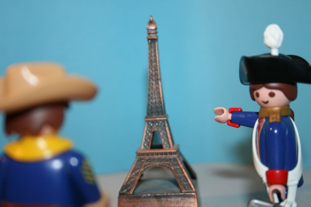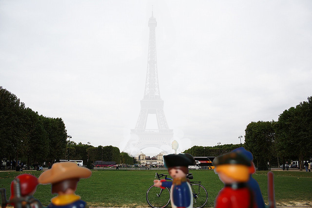 und 'ier se'en sie, La Tour Eiffel die berühmte Stahlkonstruktion des Ingenieurs Güstave Eiffel! Alle im Chor: Wo denn? Da ist ja gar nichts!