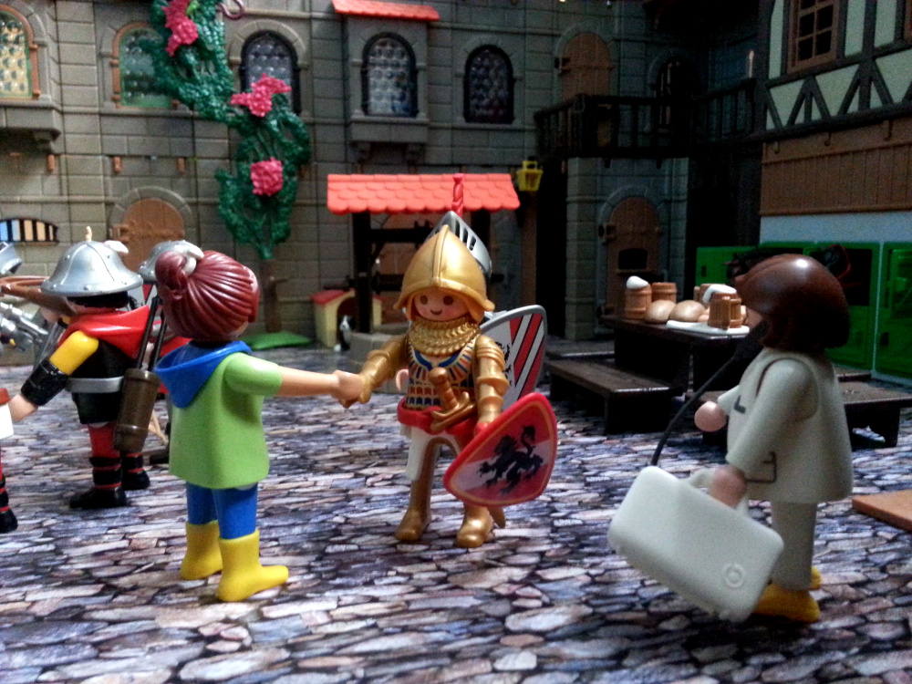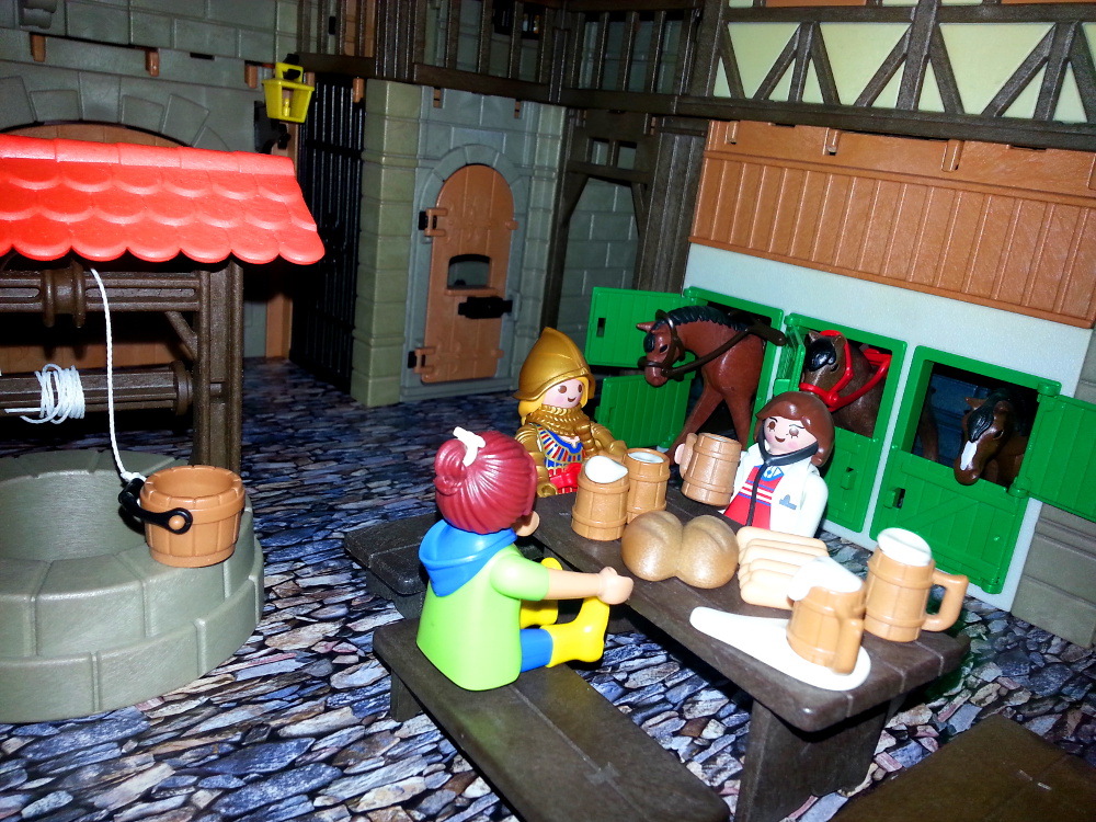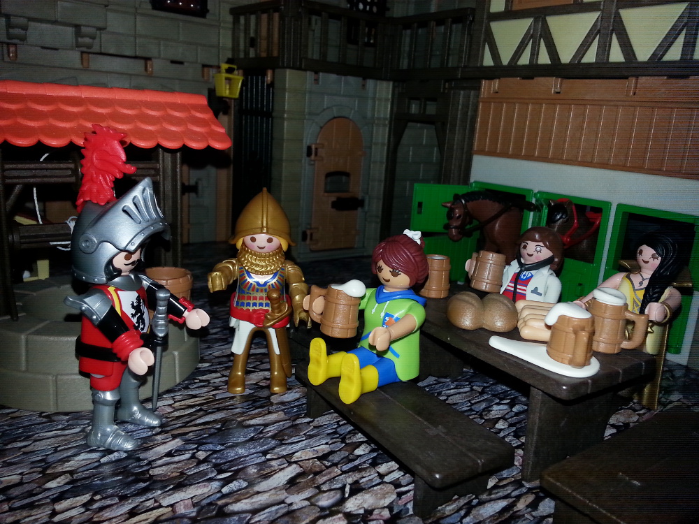 "Ich sehe hier lauter starke Krieger," sagt Charlotte, die sich auf dem Burghof umblickt. "Ob ein paar von diesen vielleicht ebenfalls mitkommen würden, zum Schutz der wervollen Tiere? Wir haben gehört, es gäbe eine Bande schiercher Männli, die hinter dem Blauschöpfen her seien, außerdem noch jede Menge skrupelloser Wilderer und noch fieserer Geschäftsleute."