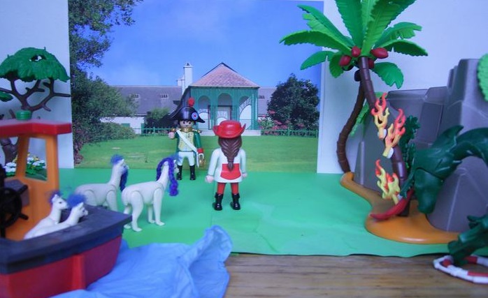 Bei dem netten Herrn in Grün handelt es sich um den ollen Bonaparte, der seit Waterloo ein ziemlich trauriges Dasein auf diesem Eiland fristet und dem daher jeder Besuch überaus willkommen ist.