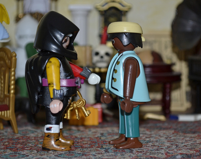 "Gut, dann geht hinaus und packt des Meifters Reisetruhe.
