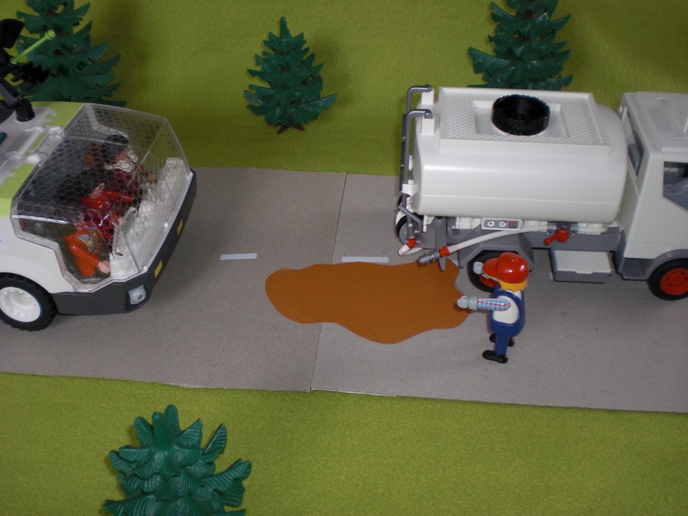 „Verdammt, was ist hier denn passiert?“, schimpft Alex als er den ausgelaufenen Tanklaster sieht.