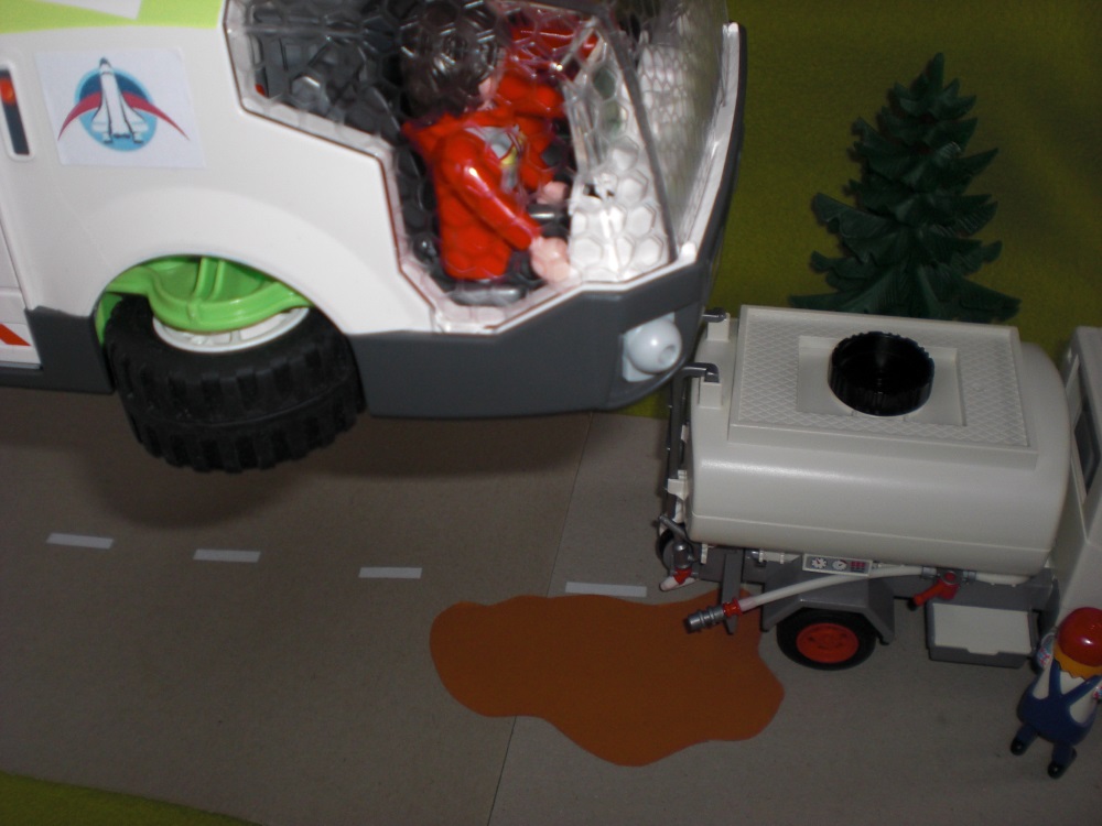 „Keine Ahnung, aber das ist auch nicht mein Problem.“, antwortet der Tankwagenfahrer genervt.