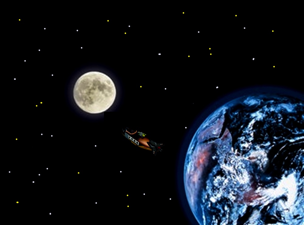 „Juhu, wir fliegen zum Mond“, schreit Zwerg Nase. Nachdem der Proviant samt Eierkuchen von Pilzi eingepackt war, ging es los.