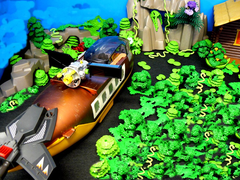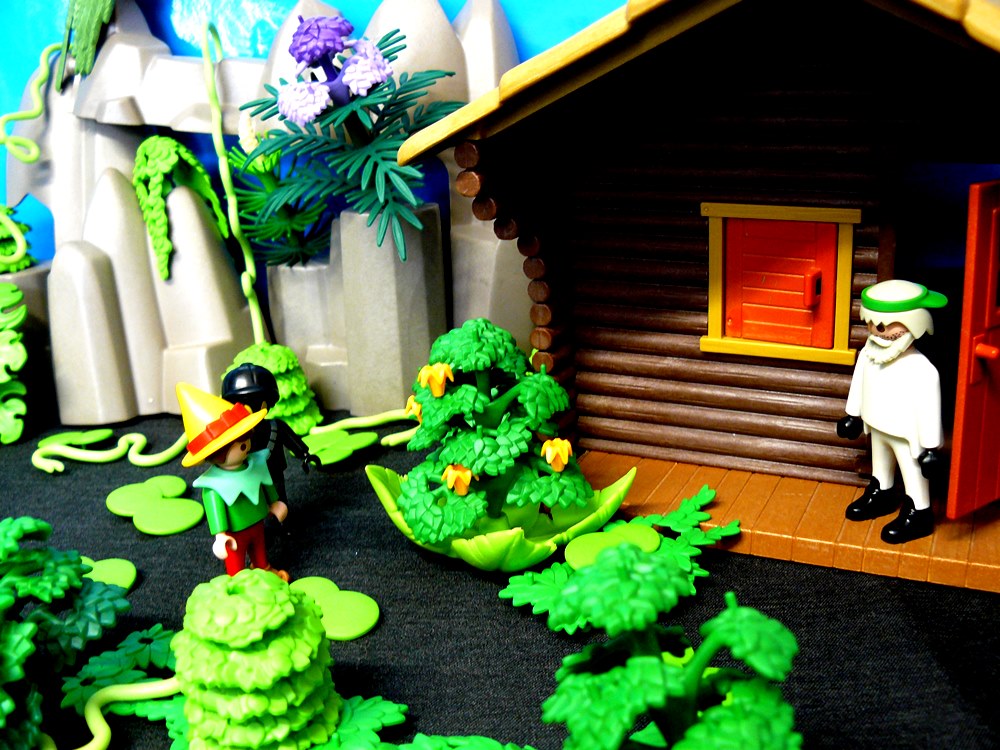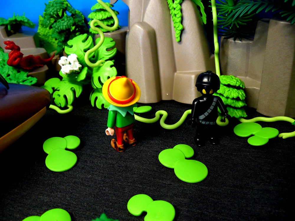 und Schlingpflanzen und komischen Tieren Beide machen sich auf den Weg zur Hütte, von der das Signal kam.