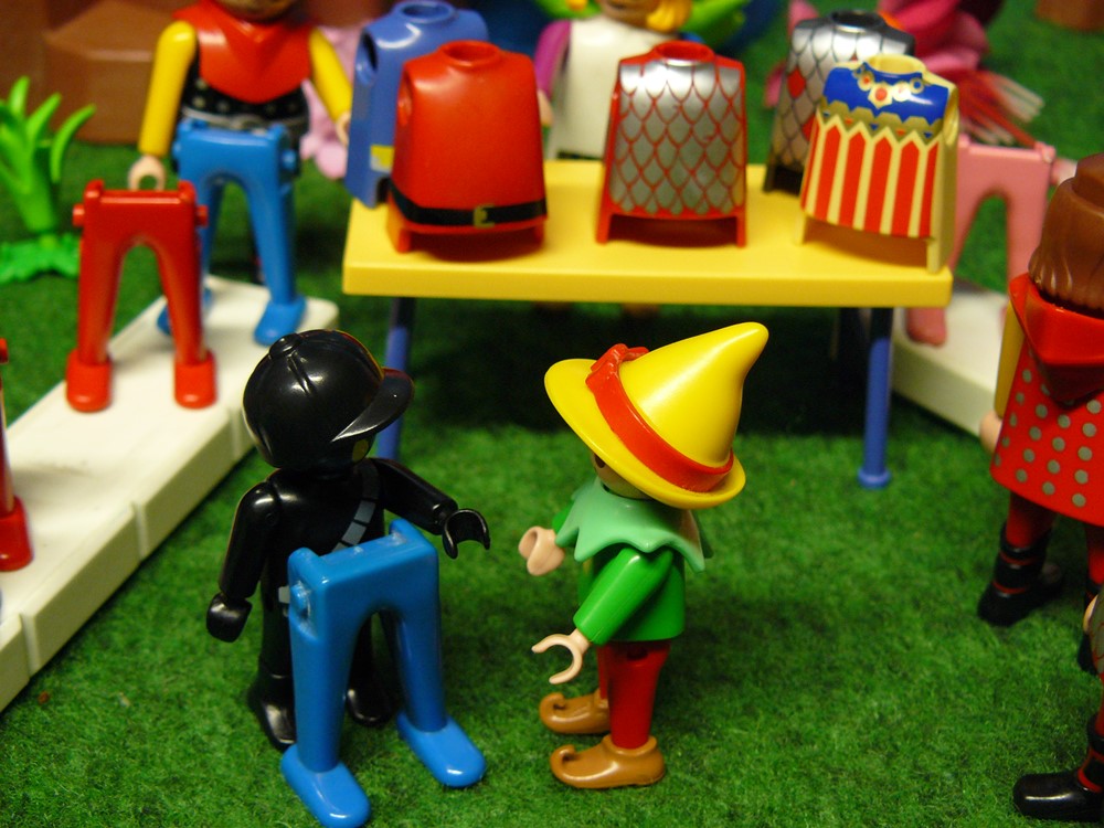 „Echte Dummpaddel“, denkt Zwerg Nase. Nebenan ist ein Basar von landesüblichen Klamotten