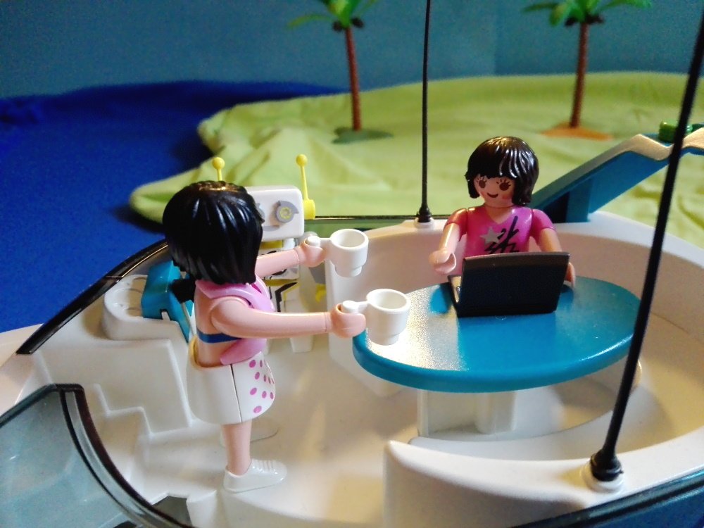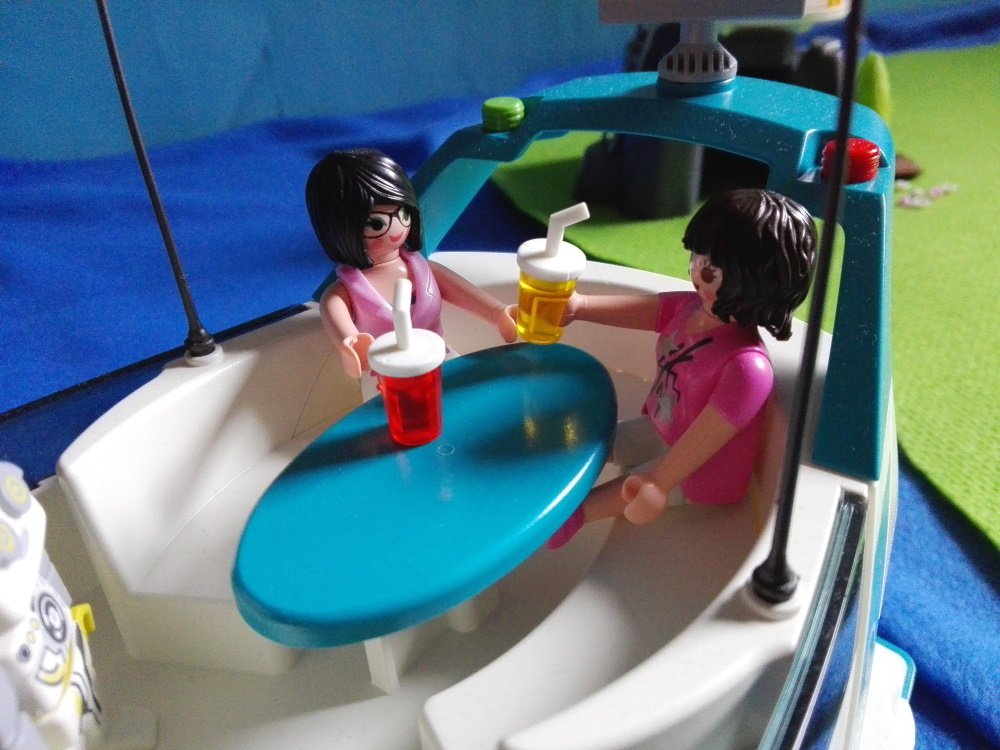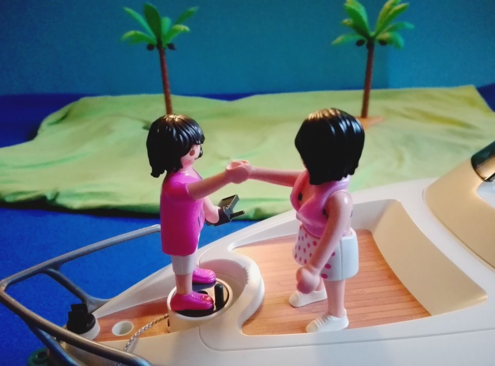 Wenig später entspannen Jenny und playmolook, befreit vom Schleim, mit einem erfrischenden Getränk an Deck ihrer Yacht.