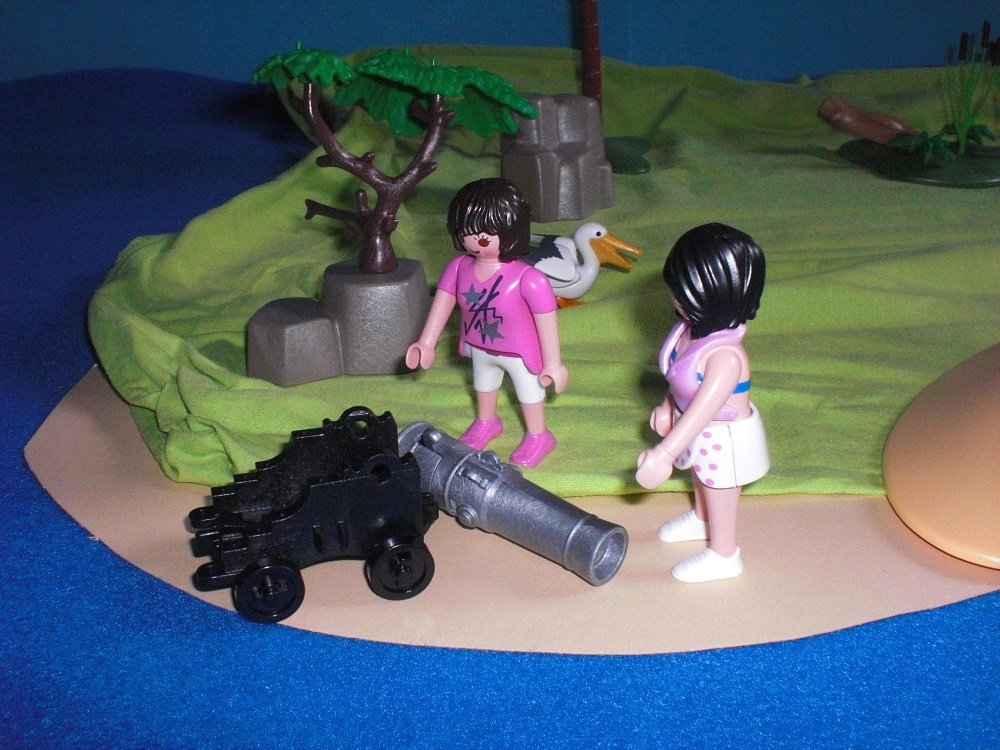 „Schau mal, da hinten sind Kraki und Flatterfee! Vielleicht möchten sie ja die Kanone haben.“