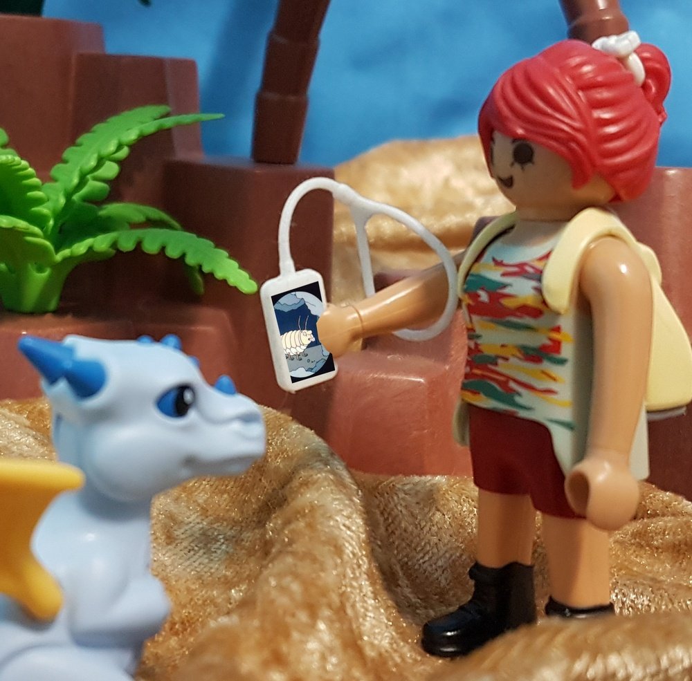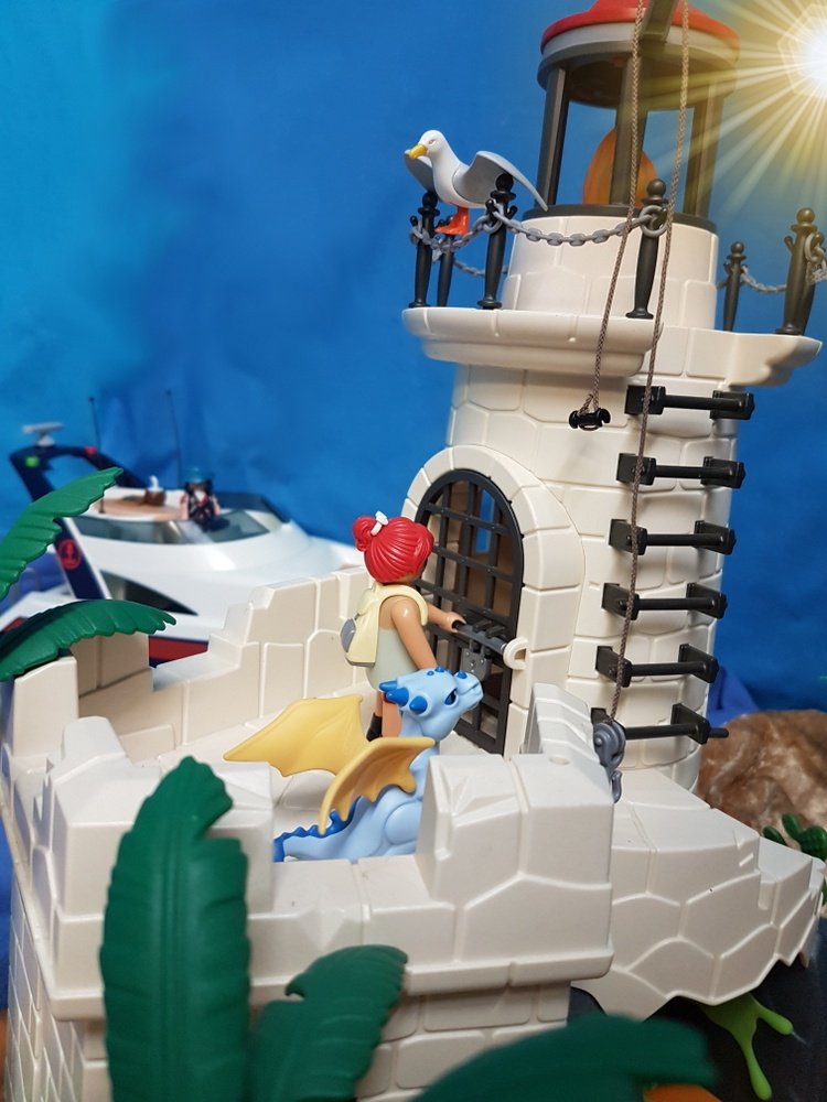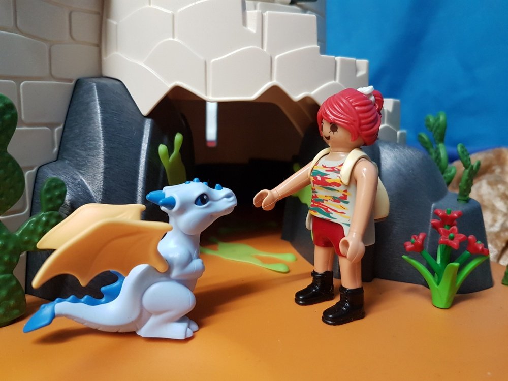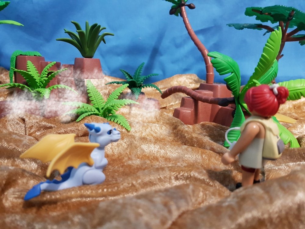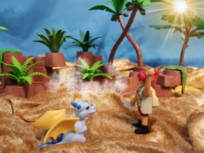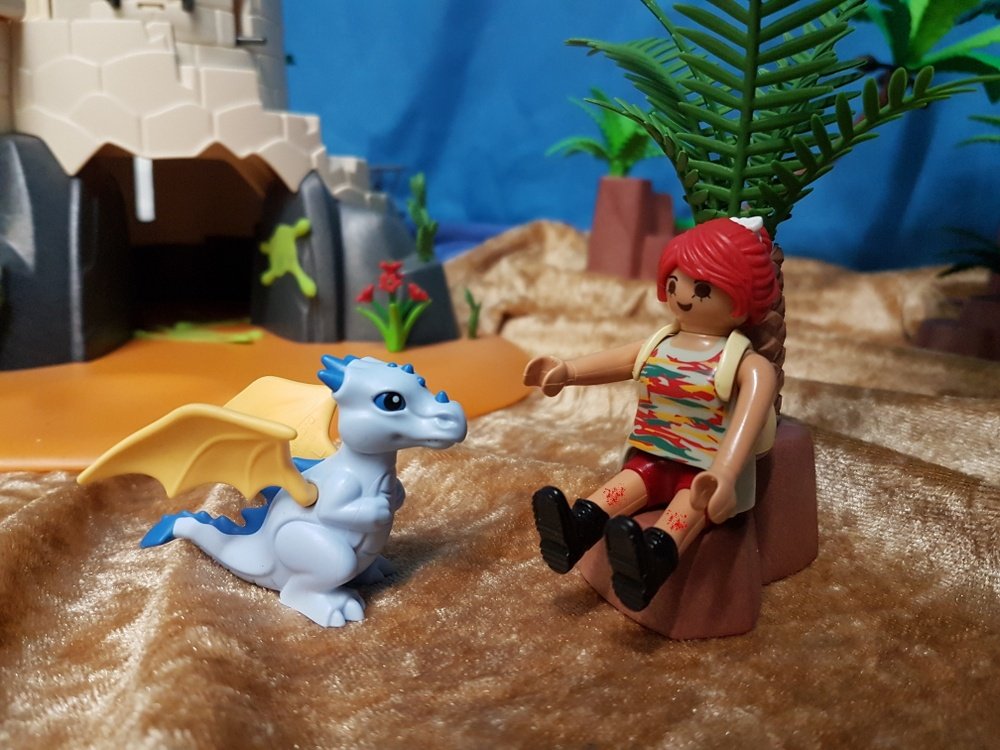 Korallina: "Der kleine Drache? Er hat sich hier schon gut eingelebt und hat schon Freunde gefunden. Wir müssen mal nachsehen, wo sie sich 'rumtreiben."