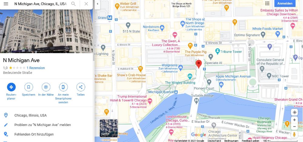 "Boah, ist Chicago eine Flächenstadt, ich suche gerade die Shopping Malls …!"