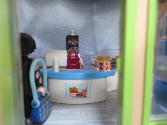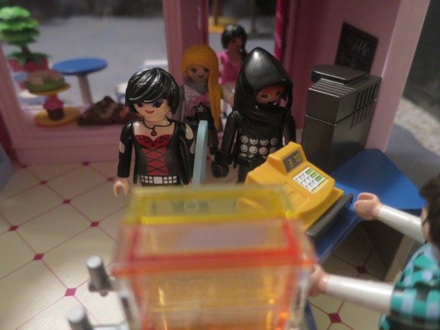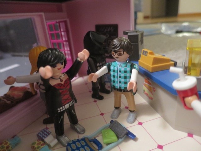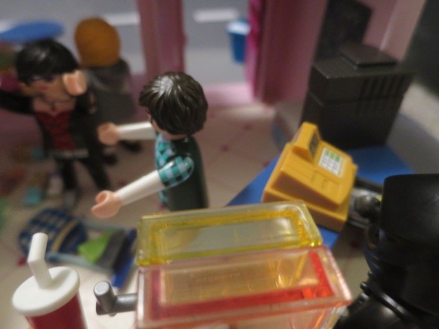 Der Kassierer kam hinter dem Tresen hervor, um zu schauen, was da los ist.