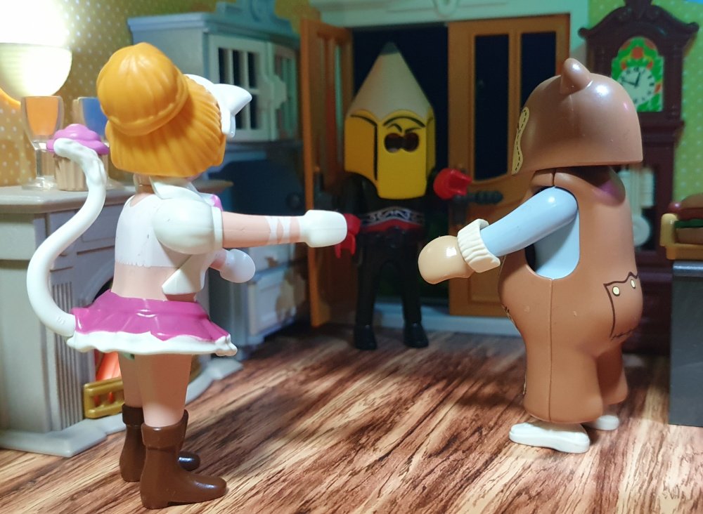 Wieder klingelt es, und diesmal stehen 2 neue Zaungäste vor der Tür. Wer könnte sich wohl unter diesen Masken verstecken?