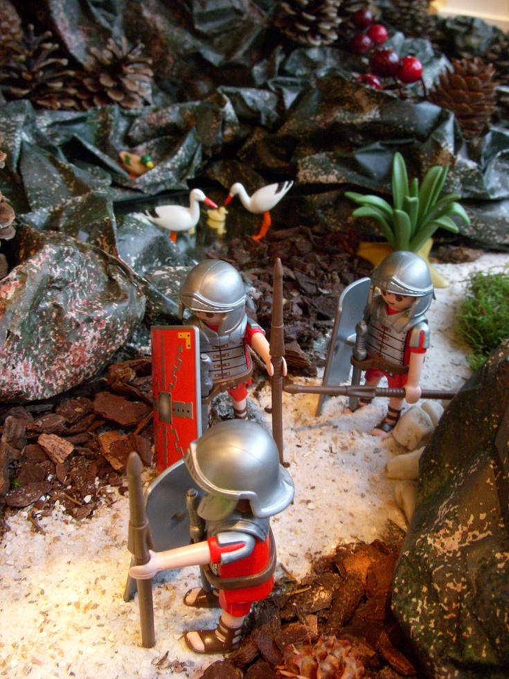 Centurion: "Ok, dann ist es Gut. Wir suchen lokale Terroristen, Frau, ein Zimmermann, Esel...! Wir sollen sie im Namen von Herodes suchen und verhaften. Habt ihr solche Typen gesehen?