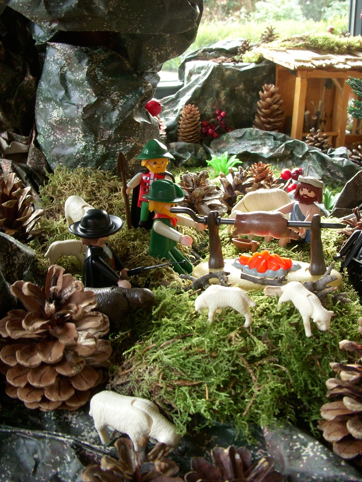 Hirte: "Genau, also Maria und Josefh werden hier bestimmt bei einer unseren Hirtenbrüder ein Unterkommen finden."