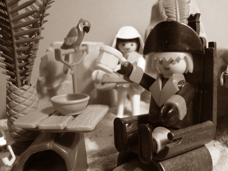 "Nun zieh doch nich sooo-hoppla-isch wollt mich noch vom Käpten mit ohne Haare verabschieden! Ein Zeuch trinkt der ...neee näh?"