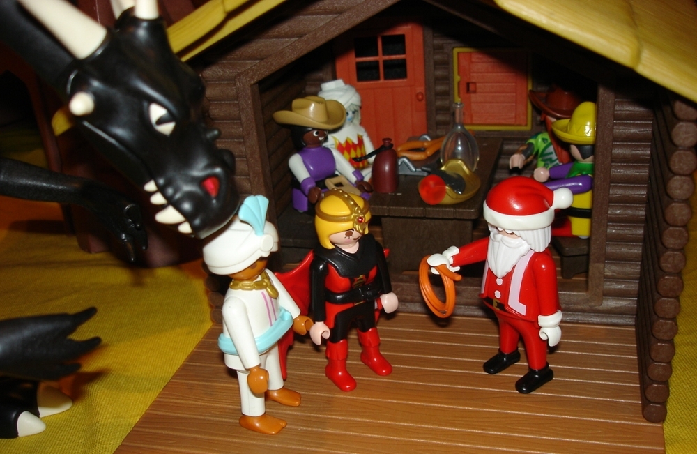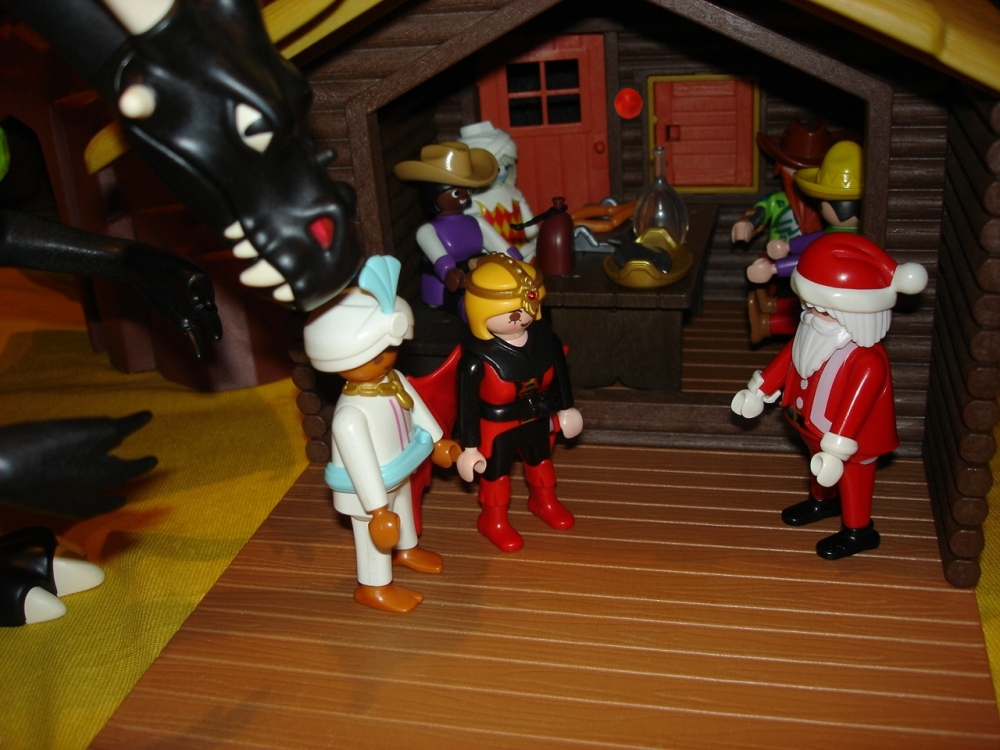Blauhirsch: "Setzt euch zu uns an unser Lagerfeuer. Wir wollen eure Ankunft feiern."
