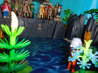 Die Prinzessin steht jetzt mit ihren Wachen auf der Ruine und schaut uns nach,