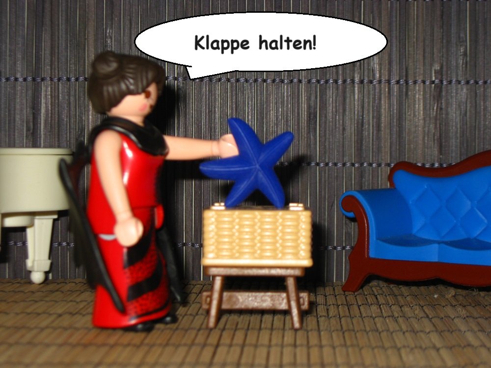 ⚃ ist's. "Au, fein!", freut sich Flatterfee [noch]. Der Rest ist sehr kryptisch: "Acht Arme ... Wesen mit fünf Armen ... Seele steckt fest ... eine Menge Bauchlandungen!