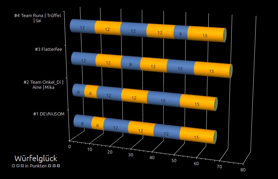 ⚂ beendet Stellvertreterin Schoko-Queen die Würfelrunde. Endbilanz: